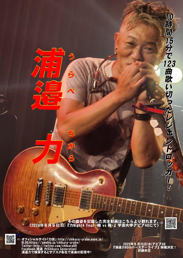 2024年6月9日(日)アピア40において開催された『力Night4 final -俺vs俺-』12×10×1で10時間15分で123曲を1人で演奏し、歌い切った記念のレジェンドポスター
